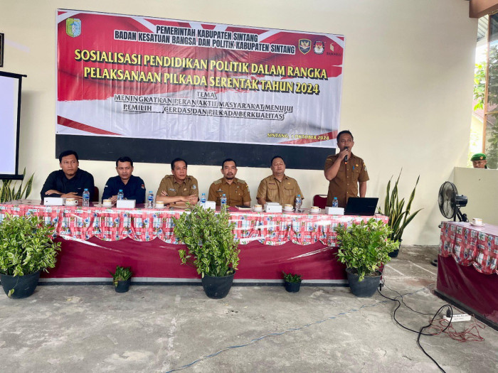 SINTANG, TB – Edy Susanto, Ketua Komisi Pemilihan Umum (KPU) Kabupaten Sintang berperan sebagai narasumber dalam Kegiatan Sosialisasi Pendidikan Politik terkait Pemilihan Bupati dan Wakil Bupati Sintang Tahun 2024.