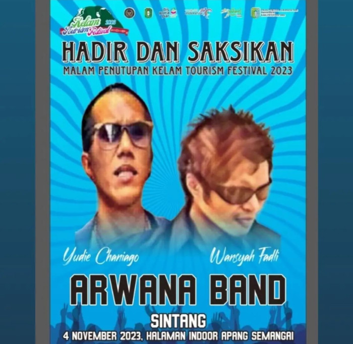 Hendrika, selaku Kepala Dinas Pemuda, Olahraga, dan Pariwisata Kabupaten Sintang, telah menginformasikan bahwa dua anggota dari grup musik Arwana, Yudie Chaniago dan Wansyah Fadli, akan tampil sebagai hiburan untuk masyarakat pada malam penutupan Kelam Tourism Festival tahun 2023.