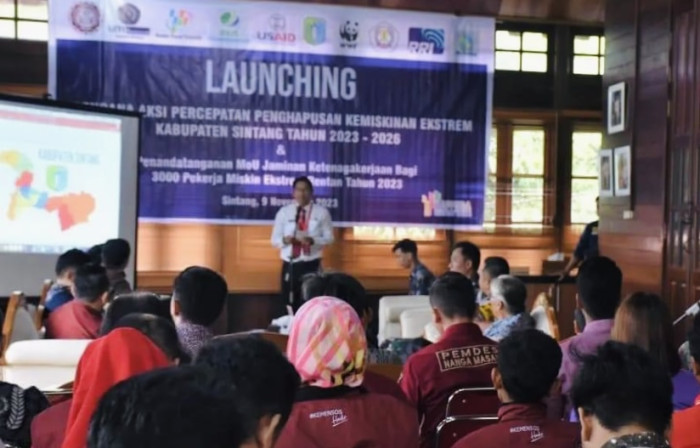SINTANG, TB – Kamis, 9 November 2023, Pemerintah Kabupaten Sintang melaunching Rencana Aksi Percepatan Penghapusan Kemiskinan Ekstrem Kabupaten Sintang Tahun 2023-2026 dan penandatanganan MoU Jaminan Sosial Ketenagakerjaan bagi pekerja miskin ekstrem rentan di Kabupaten Sintang tahun 2023 oleh Bupati Sintang, Jarot Winarno dan Kepala BPJS Ketenagakerjaan Propinsi Kalimantan Barat Ryan Gustaviana di Pendopo Rumah Jabatan Bupati Sintang.