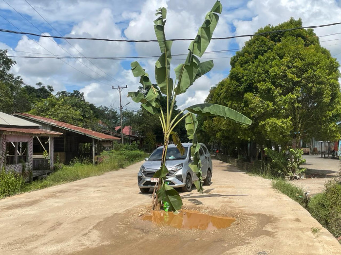 SINTANG, TB– Selama satu minggu ini, ditengah persiapan peringatan puncak Hari Ulang Tahun Kota Sintang yang ke-662 Tahun 2024 pada Jumat, 10 Mei 2024, masyarakat yang mendiami sepanjang jalan menuju Keraton Sintang, yang menamai dirinya Masyarakat Kampung Seberang, melakukan aksi sarkasme untuk memprotes Pemkab Sintang atas kondisi jalan mereka yang becek ketika musim hujan dan berdebu ketika musim panas dengan menanam pohon pisang dan sawit.