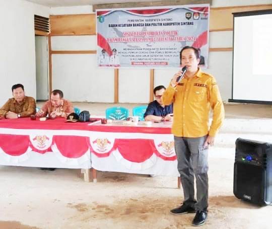 SINTANG, TB – Kamis, 12 Oktober 2023, Kusnidar, Kepala Badan Kesatuan Bangsa dan Politik Kabupaten Sintang menyampaikan bahwa pihaknya bertekad untuk membantu kesuksesan pelaksanaan pemilu pada tahun 2024 dengan melakukan sosialisasi pendidikan politik kepada masyarakat di 14 kecamatan.