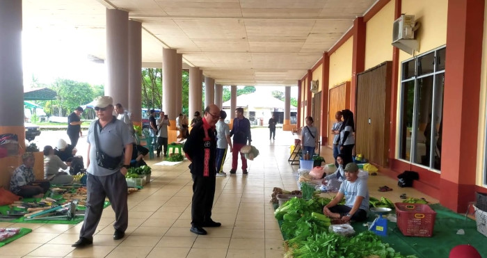 Sekda Sintang tiba dan diterima dengan hangat oleh Tim Dinas Pertanian dan Perkebunan Kabupaten Sintang serta sejumlah penjual sayur. Para pengunjung beraktivitas seperti biasanya namun belum semua pedagang atau petani mengisi lapak karena masih dalam suasana silaturahmi Idul Fitri.