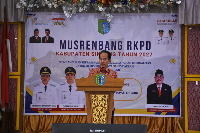 Harapan tersebut disampaikan Bupati Sintang saat membuka Musyawarah Perencanaan Pembangunan (Musrenbang) Tingkat Kabupaten Sintang Tahun 2027 di Pendopo Bupati Sintang, Kamis (9/4/2026). Kegiatan tersebut turut dihadiri Wakil Gubernur Kalimantan Barat, Krisantus Kurniawan, beserta jajaran organisasi perangkat daerah (OPD) Pemprov Kalbar.
