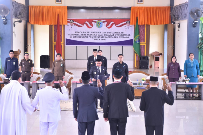 Pada acara tersebut dilakukan pula pengambilan sumpah/janji jabatan bagi pejabat struktural dan pejabat administrasif yang dilantik. Pembacaan naskah pelantikan dilakukan oleh wakil Bupati Sintang, Melkianus.