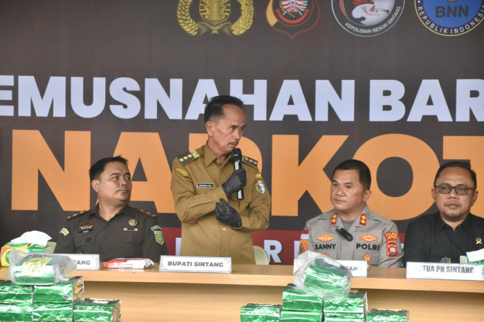 Kapolres Sintang AKBP Sanny Handityo menyampaikan bahwa pemusnahan barang bukti narkoba tersebut menunjukkan keseriusan Polres Sintang dalam memberantas peredaran narkoba.