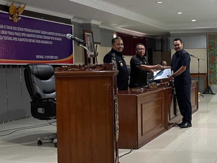 SINTANG, TB – Anggota Dewan Perwakilan Rakyat Daerah (DPRD) Kabupaten Sintang, Rudy Andryas menyampaikan padangan umum Fraksi Nasdem terhadap penyampaian nota keuangan dan Rancangan peraturan daerah tentang Anggaran Pendapatan dan Belanja Daerah Kabupaten Sintang Tahun Anggaran 2024.