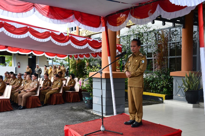 Penegasan tersebut disampaikan saat ia memimpin Apel Bulanan yang dirangkaikan dengan kegiatan Halal Bihalal Idul Fitri 1447 Hijriah di halaman Kantor Bupati Sintang, Senin (13/4/2026).