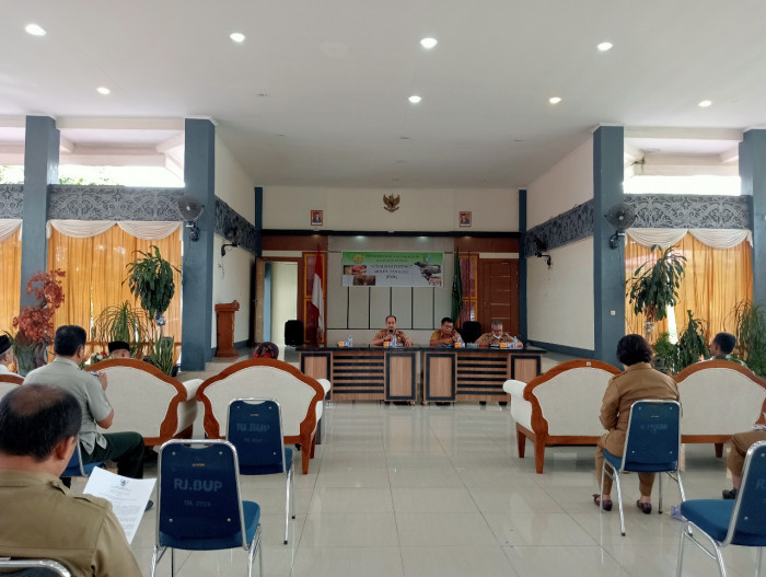 Sintang, Terasborneo.com – Bupati Sintang yang diwakili oleh Ulidal Muhtar, S.Sos, M.Si Staf Ahli Bupati Bidang Kemasyarakatan dan Sumber Daya Manusia membuka dan memberikan pengarahan pada Kegiatan Sosialisasi Penyakit Mulut dan Kuku (PMK) di Pendopo Bupati Sintang pada Selasa, 14 Juni 2022.
