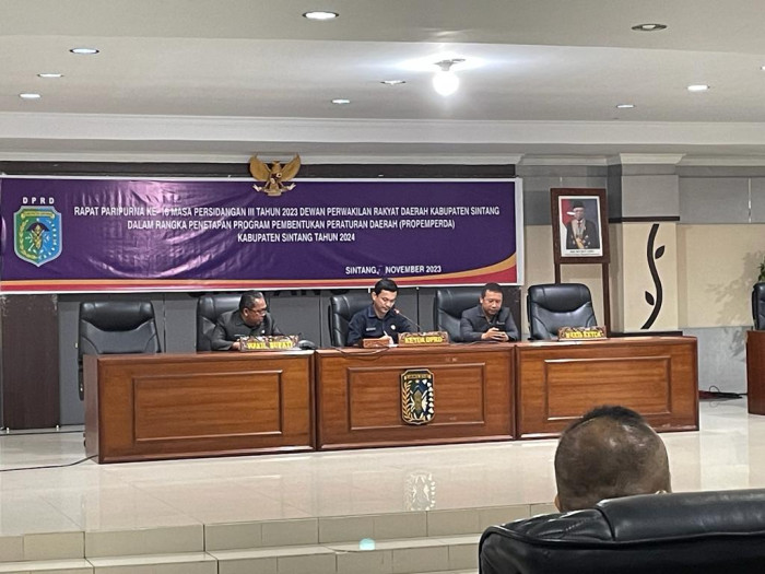 SINTANG, TB – Dewan Perwakilan Rakyat Daerah (DPRD) Kabupaten Sintang menyetujui 15 Rancangan Peraturan Daerah (Raperda) Kabupaten Sintang dibahas tahun 2024 mendatang.