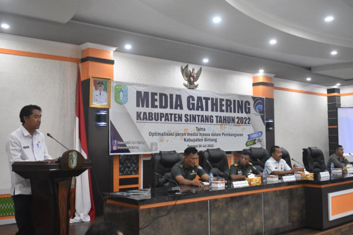 SINTANG, TB – Bupati Sintang yang diwakili oleh Selimin, SE, M. Si Staf Ahli Bupati bidang Perekonomian Pembangunan dan Keuangan memberikan pengarahan pada kegiatan Media Gathering di Balai Praja Kantor Bupati Sintang pada Rabu, 20 Juli 2022.