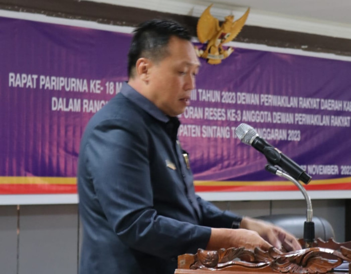 SINTANG, TB– Anggota Dewan Perwakilan Rakyat Daerah (DPRD) Kabupaten Sintang, Lim Hie Soen menyampaikan hasil kegiatan reses ke-3 DPRD Sintang Fraksi Hanura dalam Rapat Paripurna ke-18 pada Senin, 27 November 2023.