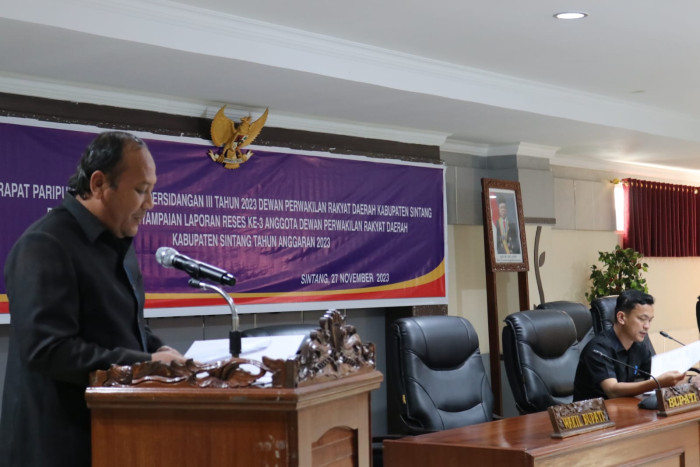 SINTANG, TB- Anggota Dewan Perwakilan Rakyat Daerah (DPRD) Kabupaten Sintang, Anton Isdianto menyampaikan hasil kegiatan reses ke-3 DPRD Sintang Fraksi Amanat Persatuan dalam Rapat Paripurna ke-18 pada Senin, 27 November 2023.