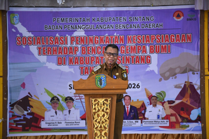 SINTANG, TB – Badan Penanggulangan Bencana Daerah (BPBD) Kabupaten Sintang menggelar sosialisasi peningkatan kesiapsiagaan terhadap bencana gempa bumi di Pendopo Bupati Sintang, Selasa (14/4/2026).